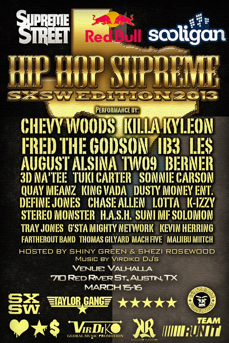 (Supreme Street), (Red Bull) & (Sooligan) (HipHop Supreme) "SXSW Edition" (March 15th) & (16th)