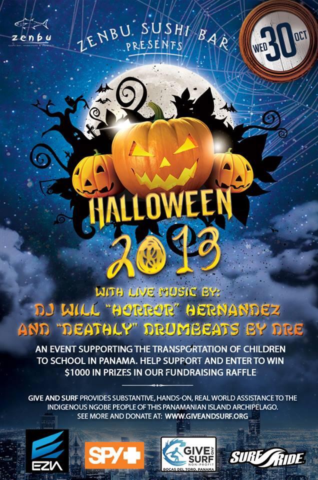 (Zenbu Sushi Bar) presents "Halloween" (October 30th) 2013 fundraiser, more information at (www.GIVEANDSURF.com)
